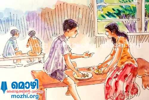 മുറിയിലെ അരണ്ടവെളിച്ചത്തിൽ ബെഞ്ചിൽ കിടന്നുറങ്ങുന്ന ഭാര്യയെ കാണാം. അവൾ വളരെ താളത്മകമായാണ് ഉറങ്ങുന്നത്. ഇടക്കൊരു ചൂളം വിളിയുമുണ്ട്. വിളിച്ചുണർത്തുന്നില്ല. പാവം ഉറങ്ങിക്കോട്ടെ.