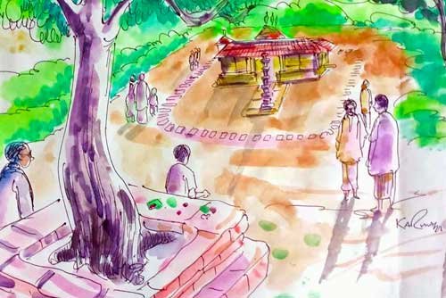 ബസ് പൊടിപടലങ്ങളുയർത്തി മറയുമ്പോൾ, വഴിയോരത്ത് രണ്ട് നിഴലുകൾ മാത്രം ബാക്കിയായി. നഗരത്തിന്റെ കഠിനമായ ചൂടിൽ നിന്നും തിരക്കിൽ നിന്നും ഒരു മോചനം തേടി അജയും രവിയും. മുന്നിൽ നെൽവയലുകൾ, പുതുതായി നെയ്തെടുത്ത പച്ചപ്പട്ടെന്നപോലെ തിളങ്ങി. ഒരു ഇളംകാറ്റ് കടന്നുപോയപ്പോൾ ആ വയൽ ഒരു കടല് തിരയെപ്പോലെ വടക്കോട്ടും തെക്കോട്ടും ആടിയുലഞ്ഞു.