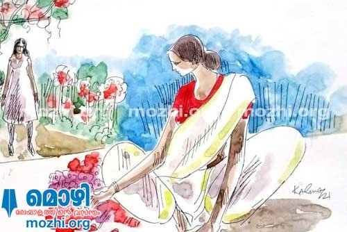 മണമില്ലാത്ത റോസയിൽ നിന്നും, കളർ ചെമ്പരത്തിയിൽ നിന്നും കുറച്ച് പൂക്കൾ ഇറുത്തെടുത്ത് മനസിൽ കുറിച്ചിട്ട കോലത്തിലേക്ക് ഓരോ ഇതളായ് ചേർക്കുകയായിരുന്നു ഭാനു അമ്മ.