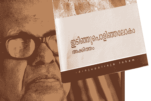 കഴിഞ്ഞ തവണ നാട്ടിൽ പോയപ്പോൾ, മാതൃഭൂമിയിൽ നിന്നും വാങ്ങിയ പുസ്തകങ്ങളുടെ കൂട്ടത്തിൽ അക്കിത്തത്തിന്റെ 'ഇടിഞ്ഞു പോളിഞ്ഞ ലോകം' ഉണ്ടായിരുന്നു. എവിടമാണ് ഇടിഞ്ഞു പൊളിഞ്ഞതെന്നറിയാൻ വാങ്ങിയതാണ്.