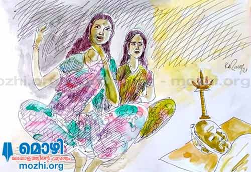 "അക്കാ.. " മുരുകന്റെ ശബ്ദം എന്നെ ചിന്തയിൽ നിന്നും ഉണർത്തി. അടുത്ത ഒപ്പാരി ബുക്കിങ് ആയി വന്നതാണവൻ. ചില വീടുകളിൽ പോയാൽ അവരുടെ ദുഃഖം കണ്ടാൽ നമുക്ക് അറിയാതെ വേദന തോന്നും, മനസ്സറിഞ്ഞ് പാടും. വേഷം മാറി അടുത്ത ഊര് ലക്ഷ്യമാക്കി നടന്നു. പൂമുഖത്തിലൂടെ അകത്തളത്തിലേക്ക് കയറി. അവിടെ മുടിയൊക്കെ അഴിഞ്ഞുലഞ്ഞ്, സിന്ദൂരം മായ്ച്ചു കളഞ്ഞ് കുപ്പിവളയൊക്കെ അടിച്ചുടച്ച് കളയാൻ തയ്യാറായി ഒരു സ്ത്രീ രൂപം. ഞാനും കൂട്ടാളികളും ഞങ്ങളുടെ ജോലി നിർവഹിച്ചു കൊണ്ടേ ഇരുന്നു. പെട്ടെന്നാണ് ആ മുഖം എന്റെ കണ്ണിൽ തെളിഞ്ഞത്. പോയ പത്ത് വർഷങ്ങൾ മനസ്സിലൂടെ ഓടിനടന്നു. എപ്പോഴും മരിച്ചു കൊണ്ടിരുന്ന ആ മുഖം കണ്ടപ്പോൾ ഞാൻ ഒപ്പാരി പാടാൻ മറന്നു. കയ്യിൽ കിടന്ന കുപ്പിവളകളും മഞ്ഞച്ചരടും തനിയെ അഴിഞ്ഞുപോയി. പക കൊണ്ട് മനസ്സ് നിറഞ്ഞു. കണ്ണുകൾ ധാര ധാരയായി ഒഴുകി. എന്റെ മനസ്സ് എന്നോട് ചോദിച്ചു… ഈ കണ്ണീർ എന്തിന്റെ ഭാഗമാണ്… നിസ്സഹായതയുടെ, പ്രണയത്തിന്റെ,നഷ്ടബോധത്തിന്റെ അതോ വഞ്ചിക്കപ്പെട്ടതിന്റെ… ആർത്തലച്ചു കരയുന്നതിനിടയിൽ ഞാൻ മന്ത്രിച്ചു….സ്വാതന്ത്ര്യത്തിന്റെ മിഴിനീർപ്പൂക്കൾ ആണിത്. പ്രതീക്ഷയിൽ നിന്നും യാഥാർഥ്യത്തിന്റെ വഴികളിലൂടെ ഒഴുകി വന്ന ജ്വലിക്കുന്ന ജീവിതനൊമ്പരത്തുള്ളികൾ എന്നും പറഞ്ഞ് ഞാൻ കിണറ്റിൽ നിന്നും വെള്ളം കോരി തലയിലൂടെ ഒഴിച്ച് കുപ്പിവളകൾ ശക്തമായി കല്ലിലിടിച്ചു തകർത്തു. ആ ശക്തിയിൽ വിറകൊണ്ട് പ്രപഞ്ചം തോരാമഴയിൽ കുളിച്ചു നിന്നു.