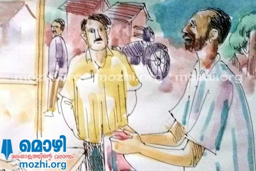 കത്തുന്ന ഉച്ചവെയിലിൽ, വലിച്ചുകെട്ടിയ കുഞ്ഞുഷീറ്റിനു താഴെ മെറ്റൽകൂമ്പാരങ്ങൾക്കു പിന്നിലിരുന്ന് മെറ്റലടിക്കുന്ന രാധയുടെ, ചുറ്റികത്തഴമ്പുപൊട്ടിയ നീറ്റലിലേക്ക് രണ്ടിറ്റു കണ്ണുനീർതുള്ളികൾ അടർന്നുവീണു!