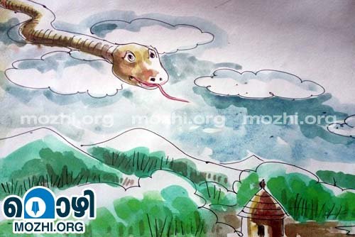 ക്ഷേത്രത്തിൽ നിന്ന് പ്രഭാതത്തിലെ ശംഖനാദമുയർന്നപ്പോൾ, ആ ചക്രവാതച്ചുഴി ശക്തികുറഞ്ഞ് സുഖകരമായ കുളിർകാറ്റായി മാറി. ക്ഷേത്രനടയിലേക്ക് പുളവൻ താഴ്ന്നു താഴ്ന്നു വന്നു.